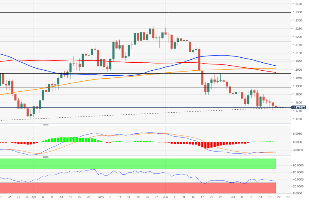 El EUR/USD sigue luciendo vulnerable por debajo de 1.1800 y amenaza con romper la línea de soporte de 2020-2021 cerca de 1.1780.