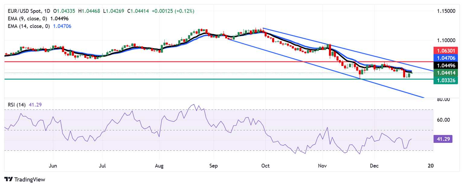 EUR/USD Análisis del Precio: Prueba la EMA de nueve días cerca de 1.0450, el RSI mejorado respalda el alza