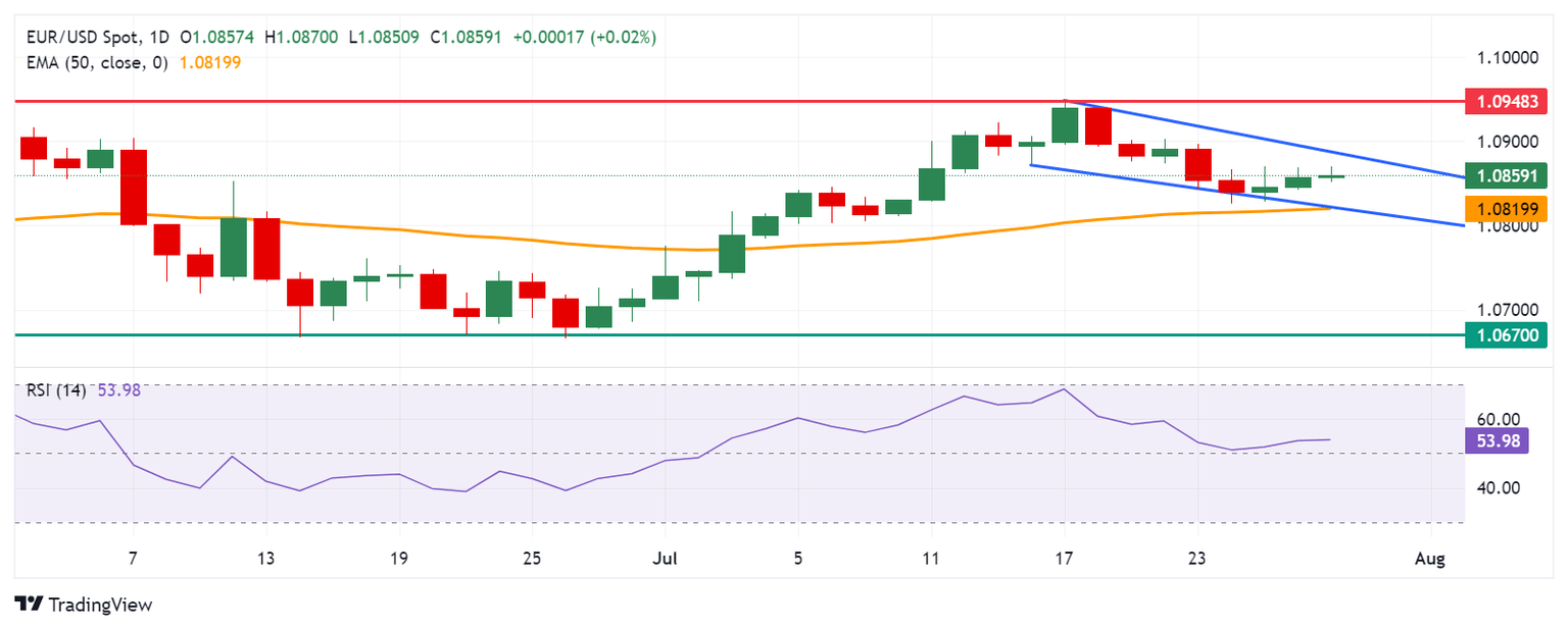 EUR/USD Análisis del Precio: Se mueve por encima de 1.0850 hacia el límite superior del canal