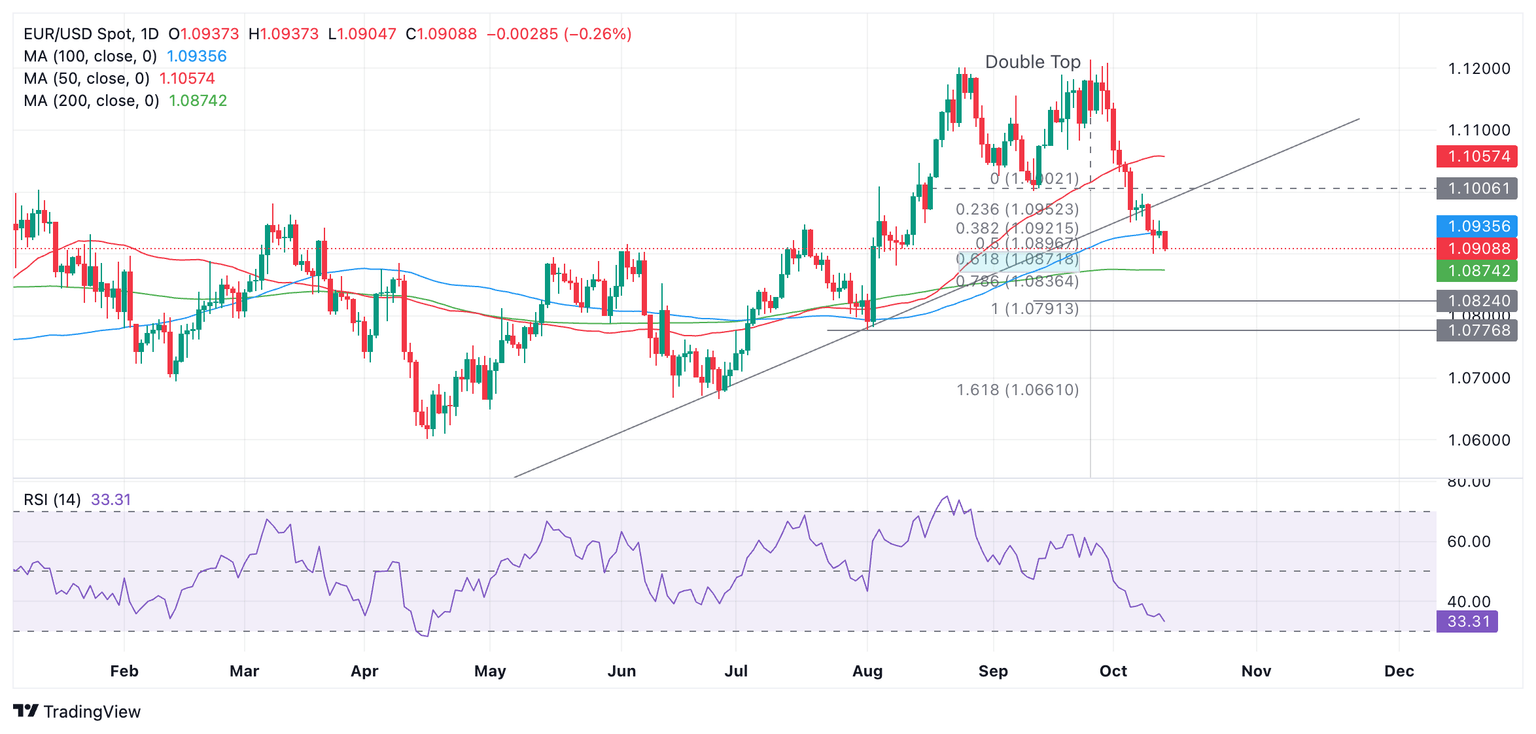 El EUR/USD también podría estar bajo una presión creciente a medida que los inversores venden el Euro (EUR) antes de la reunión del Banco Central Europeo (BCE) el jueves. La mayoría de los analistas ahora esperan que el banco anuncie un nuevo recorte de tasas de 25 puntos básicos (pb) (0,25%) en la reunión de política monetaria, lo que lo convertiría en el segundo recorte consecutivo. Esto, a su vez, probablemente debilitará al Euro, ya que las tasas de interés en caída atraen menores flujos de capital extranjero.