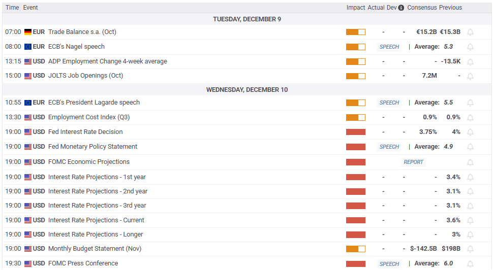 El martes, la agenda económica de EE.UU. presentará el promedio de 4 semanas del Cambio de Empleo ADP y las Ofertas de Empleo JOLTS de octubre. En la Eurozona, los operadores estarán atentos a la Balanza Comercial de Alemania para diciembre y al discurso de Joachim Nagel del BCE.