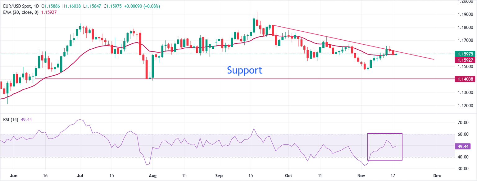EUR/USD Pronóstico de precio: Se mantiene en retroceso cerca de 1.1600 desde máximos inmediatos