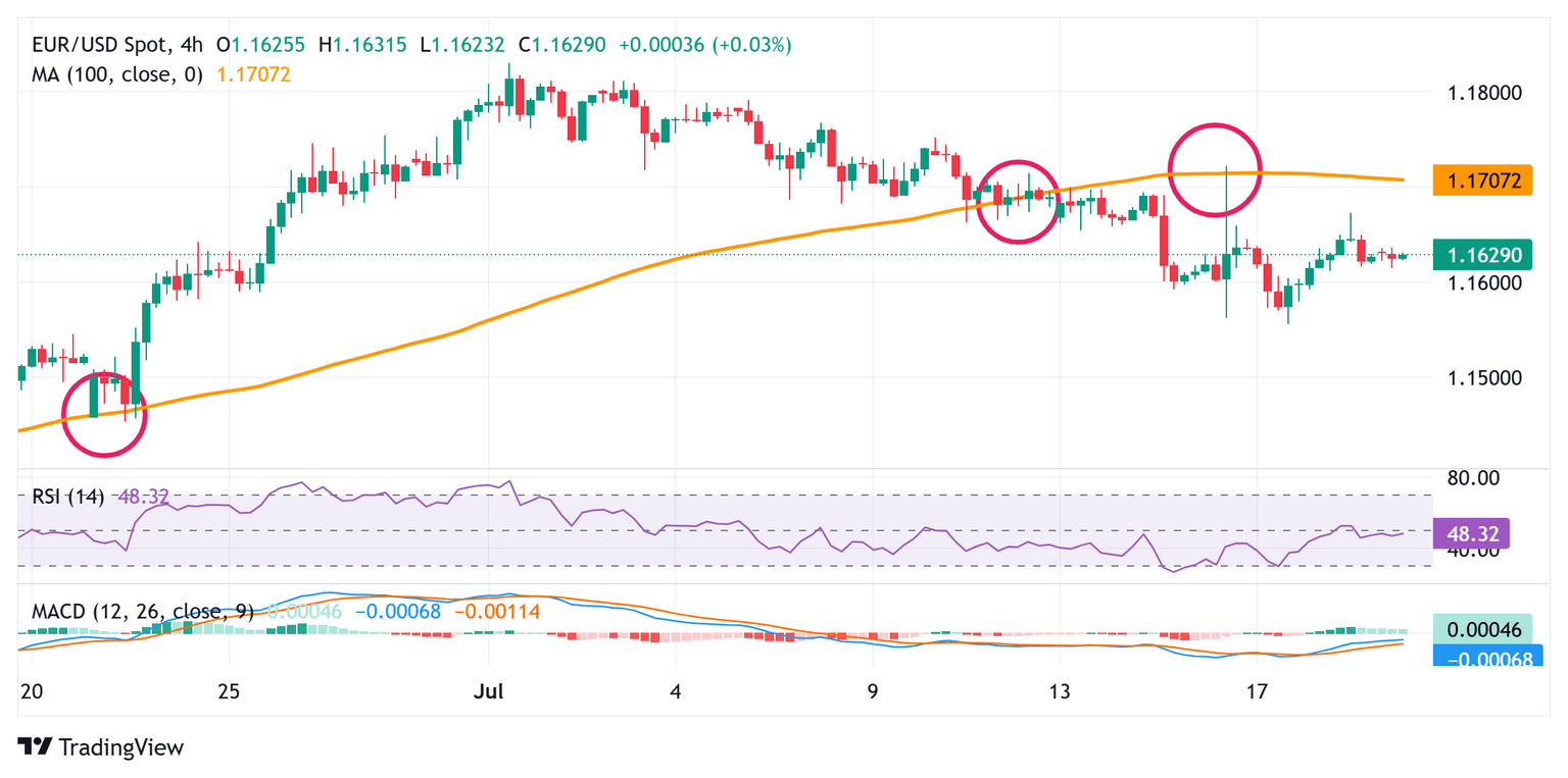 EUR/USD Pronóstico: Manteniéndose estable alrededor del área de 1.1625; aún no está fuera de peligro