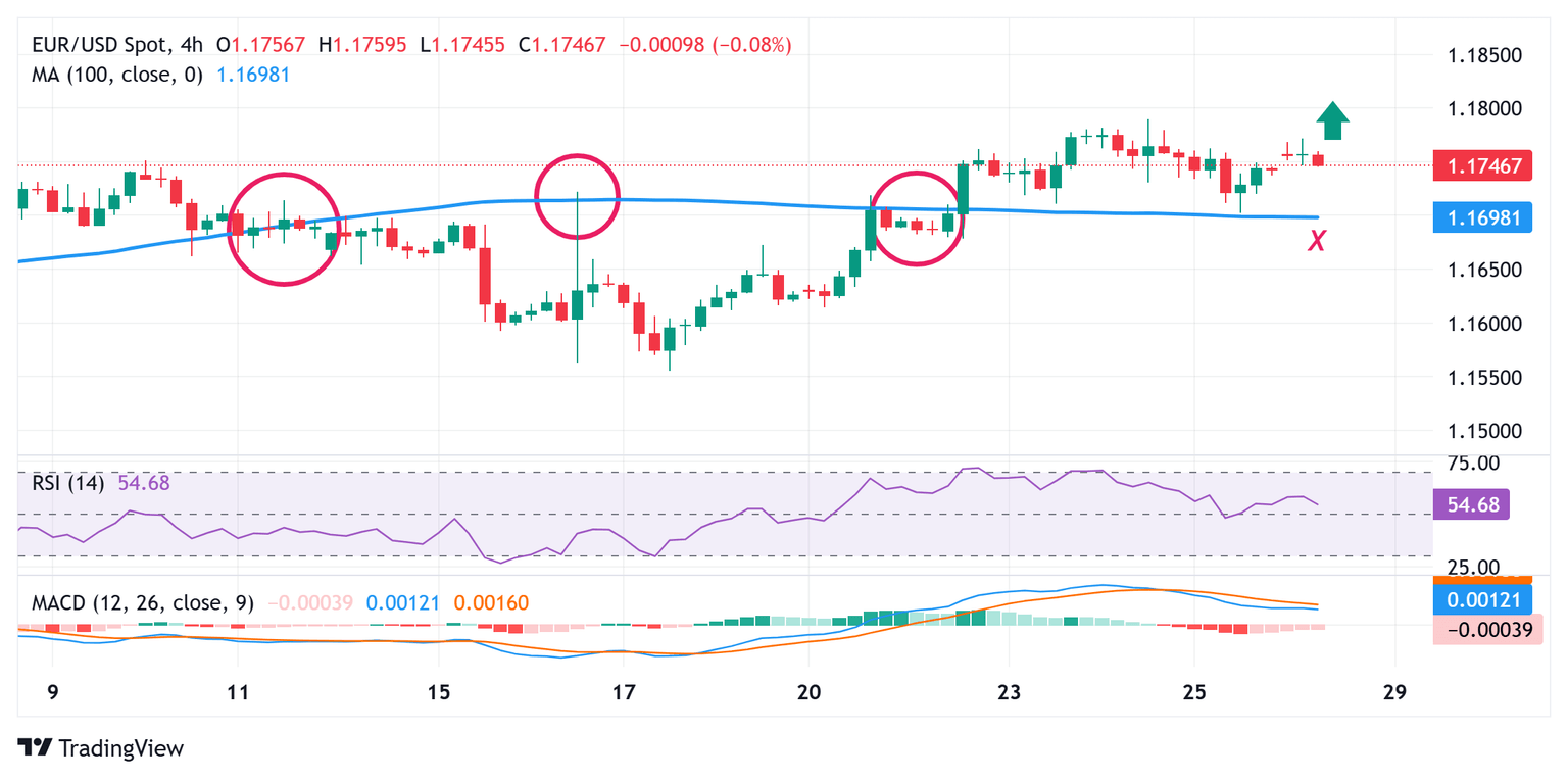 EUR/USD Pronóstico del Precio: El sesgo alcista se mantiene mientras esté por encima de 1.1700, 100-SMA en 4h