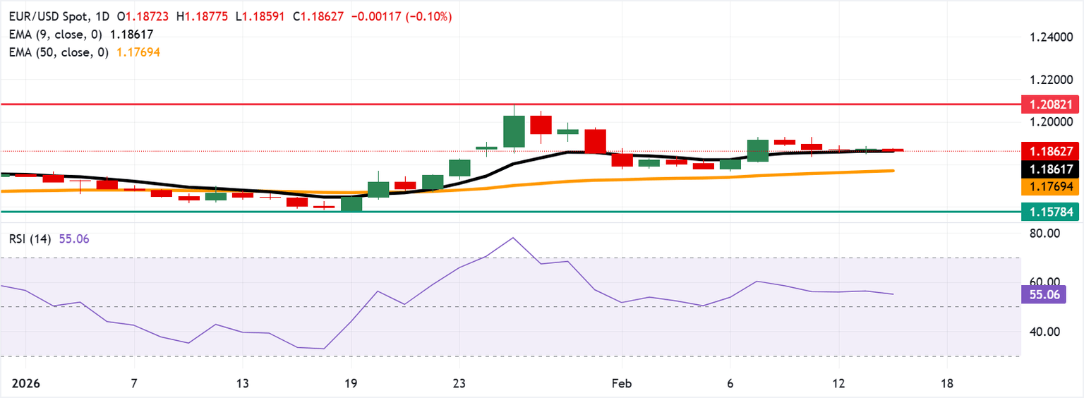 EUR/USD Pronóstico del Precio: Prueba el soporte de la EMA de nueve días cerca de 1.1850