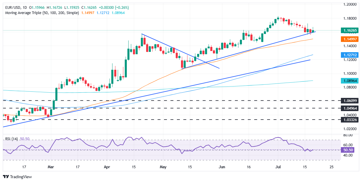 El EUR/USD se disparó el lunes, subiendo más del 0.50%, mientras el Dólar estadounidense cedía terreno, debilitado por una caída en los rendimientos del Tesoro estadounidense y la incertidumbre comercial, con la fecha límite del 1 de agosto a la vista. Esto desencadenó salidas del Dólar, como lo indica el par cotizando a 1.1694 después de rebotar desde mínimos diarios de 1.1614.