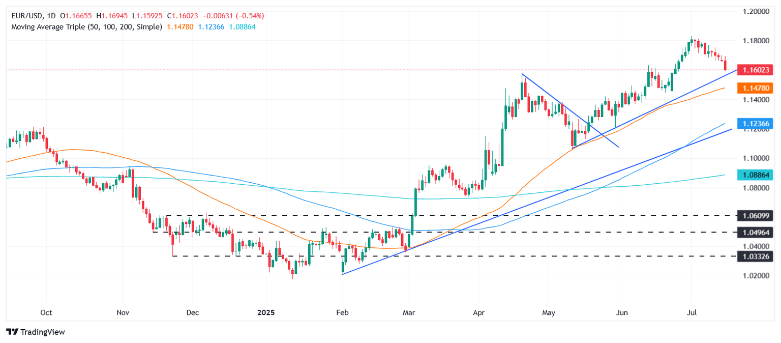 Si el EUR/USD cae por debajo de 1.1600, el siguiente soporte sería la SMA de 50 días en 1.1481. Una vez superado, la siguiente parada sería la cifra de 1.1400, seguida por la SMA de 100 días en 1.1254. Por el contrario, si el par supera la SMA de 20 días, se espera un movimiento hacia 1.1700, seguido por el máximo diario del 20 de julio en 1.1749, antes de 1.1800 y el reciente máximo de 1.1829.