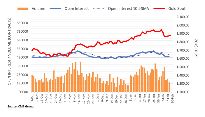 Teniendo en cuenta las cifras avanzadas de CME Group para los mercados de futuros del Oro, el interés abierto se redujo por quinta sesión consecutiva el miércoles, esta vez en sólo 790 contratos. El volumen siguió el ejemplo y cayó en alrededor de 45.700 contratos.