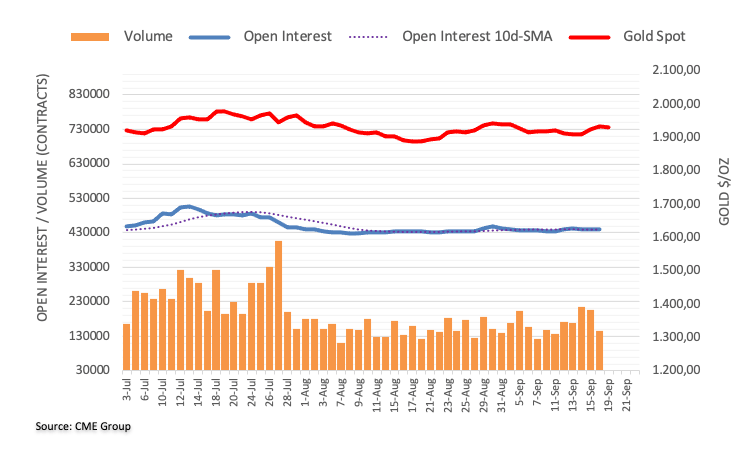 El Interés abierto en los mercados de futuros del Oro subió por segunda sesión consecutiva el lunes, esta vez en sólo 161 contratos según las lecturas preliminares de CME Group. El volumen, en cambio, se redujo por segunda sesión consecutiva, ahora en unos 62.300 contratos.