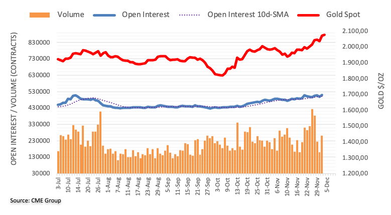 El interés abierto en los mercados de futuros del Oro reanudó la tendencia alcista y aumentó en unos 12.000 contratos a finales de la semana pasada, según las lecturas preliminares de CME Group. El volumen hizo lo propio y avanzó en más de 99.000 contratos después de tres retrocesos diarios consecutivos.