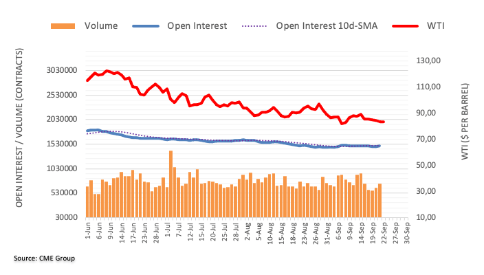 Los precios del WTI extendieron el tramo a la baja el miércoles en medio de un aumento del interés abierto y del Volumen, lo que apoya un probable retroceso más profundo a muy corto plazo. Por el contrario, el siguiente soporte a tener en cuenta aparece en el nivel redondo de 80.00$.