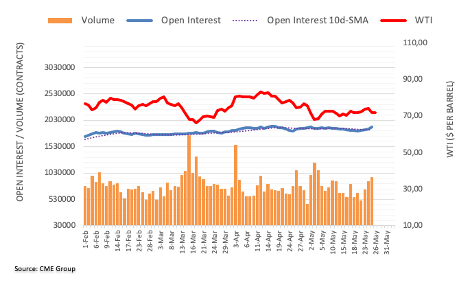 El fuerte retroceso de los precios del WTI del jueves se debió al aumento del interés abierto y del volumen. Dicho esto, parece probable que se produzcan nuevas pérdidas y se espera que la materia prima se enfrente al siguiente soporte en la zona de 70.00$ por barril.