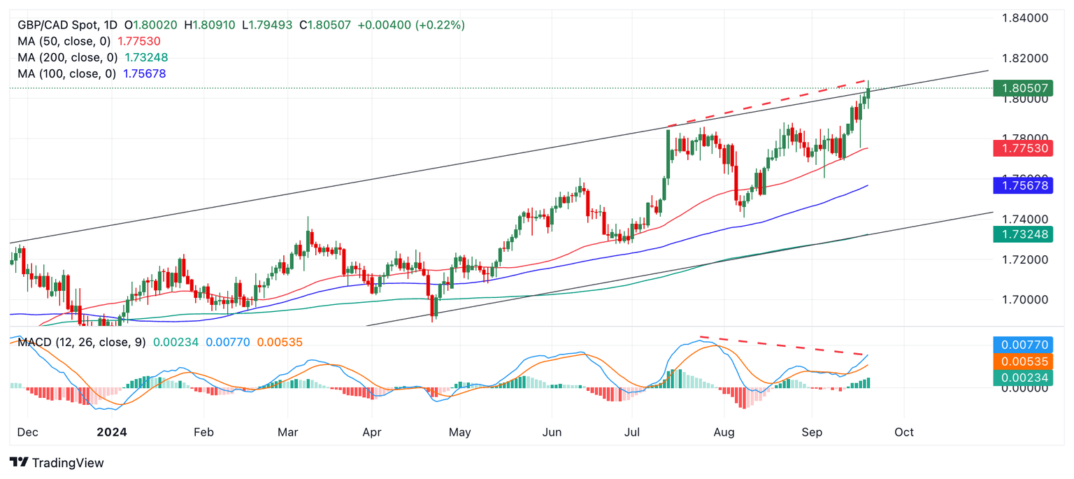 - El GBP/CAD ha subido hasta la resistencia en la línea superior del canal ascendente.