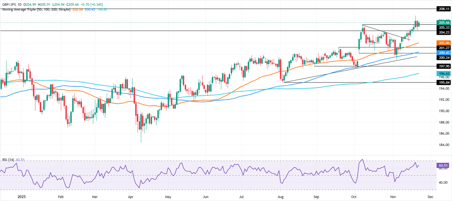 GBP/JPY Pronóstico de precios: Gana 0.35% a medida que el yen se debilita, prueba 206.00