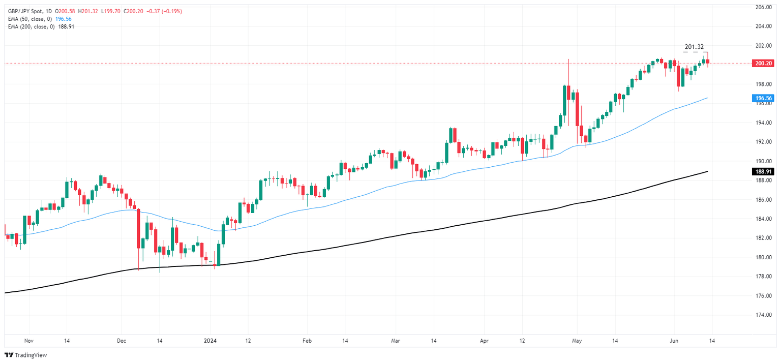- El cruce GBP/JPY alcanzó un nuevo máximo de 16 años de 201.32 el jueves.