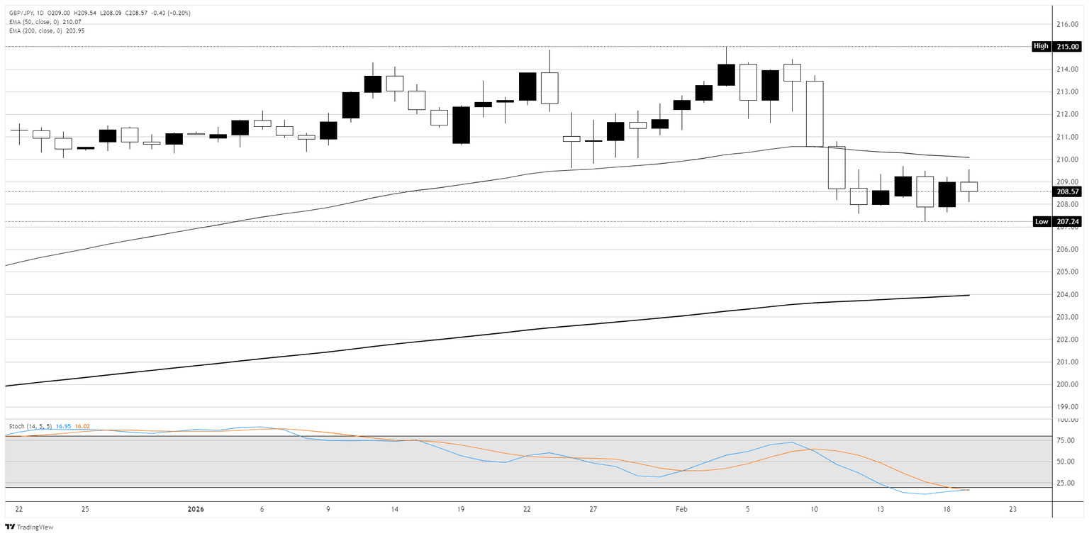 En el lado del Yen japonés, el BoJ mantuvo su tasa en 0.75% en enero, pero el miembro de la junta Masu declaró este mes que se necesitan más subidas para completar la normalización de la política. Los mercados asignan aproximadamente un 80% de probabilidad a un movimiento en abril, y el Yen ha encontrado soporte en esa expectativa junto con el mensaje de disciplina fiscal de la Primera Ministra Takaichi. La combinación de una perspectiva dovish del BoE y un BoJ que se endurece gradualmente está creando un viento en contra estructural para el cruce.