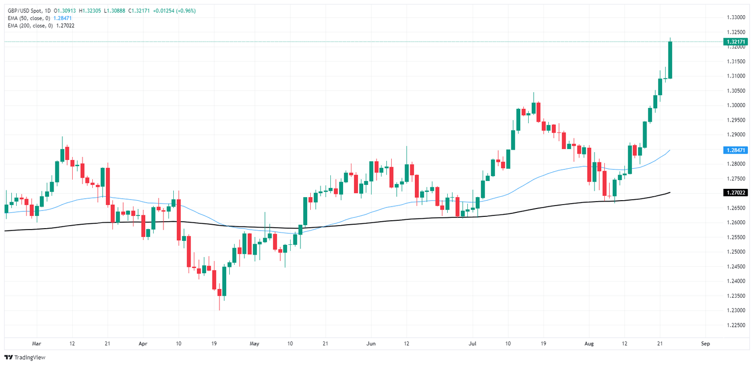 - El GBP/USD superó 1.3200 debido a la debilidad generalizada del Dólar estadounidense.