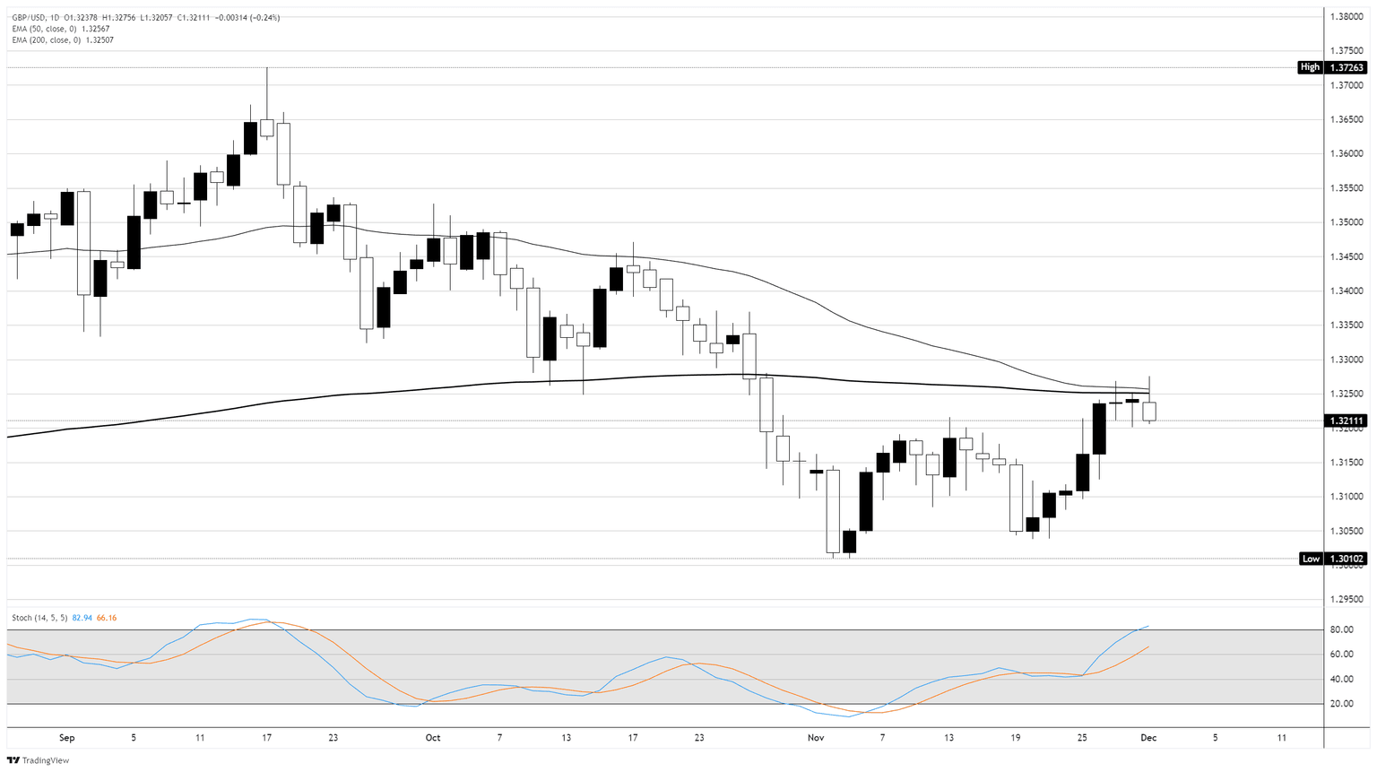 La acción del precio del GBP/USD encontró una dura resistencia en el nivel de 1.3250 el lunes, rechazando las ofertas intradía y enviando al par Cable de regreso hacia el vecindario de 1.3200. La convergencia de las medias móviles exponenciales (EMA) de 50 días y 200 días en la región de 1.3250 añade una presión significativa a la baja en la zona del gráfico, y un oscilador estocástico lento (14,5,5) que prueba el lado alto de las condiciones de sobrecompra sugiere que un mayor impulso a la baja podría estar en camino.