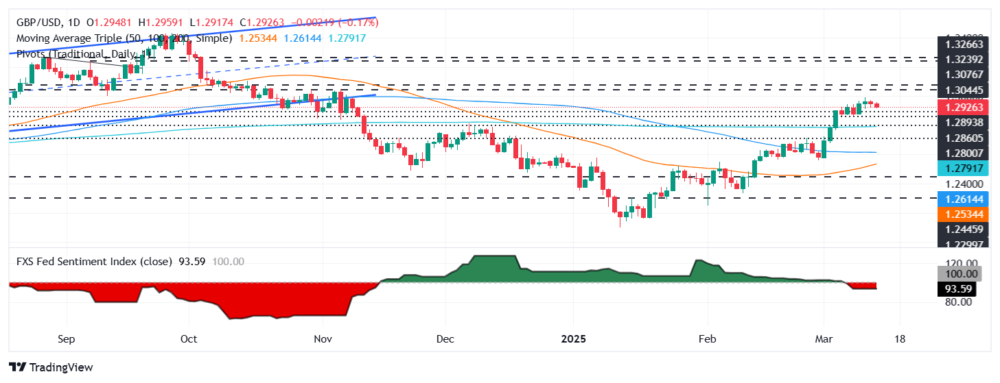 - El GBP/USD cae pero se mantiene por encima del nivel psicológico clave de 1.2900 en medio de la incertidumbre continua.