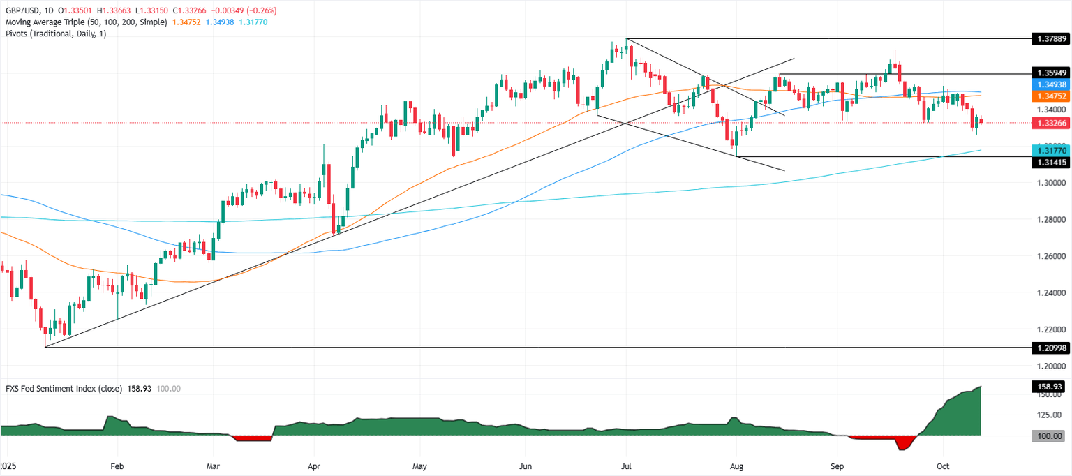 - El GBP/USD retrocede a 1.3325 mientras Trump señala un deshielo con China, aliviando los nervios del mercado impulsados por aranceles de la semana pasada.