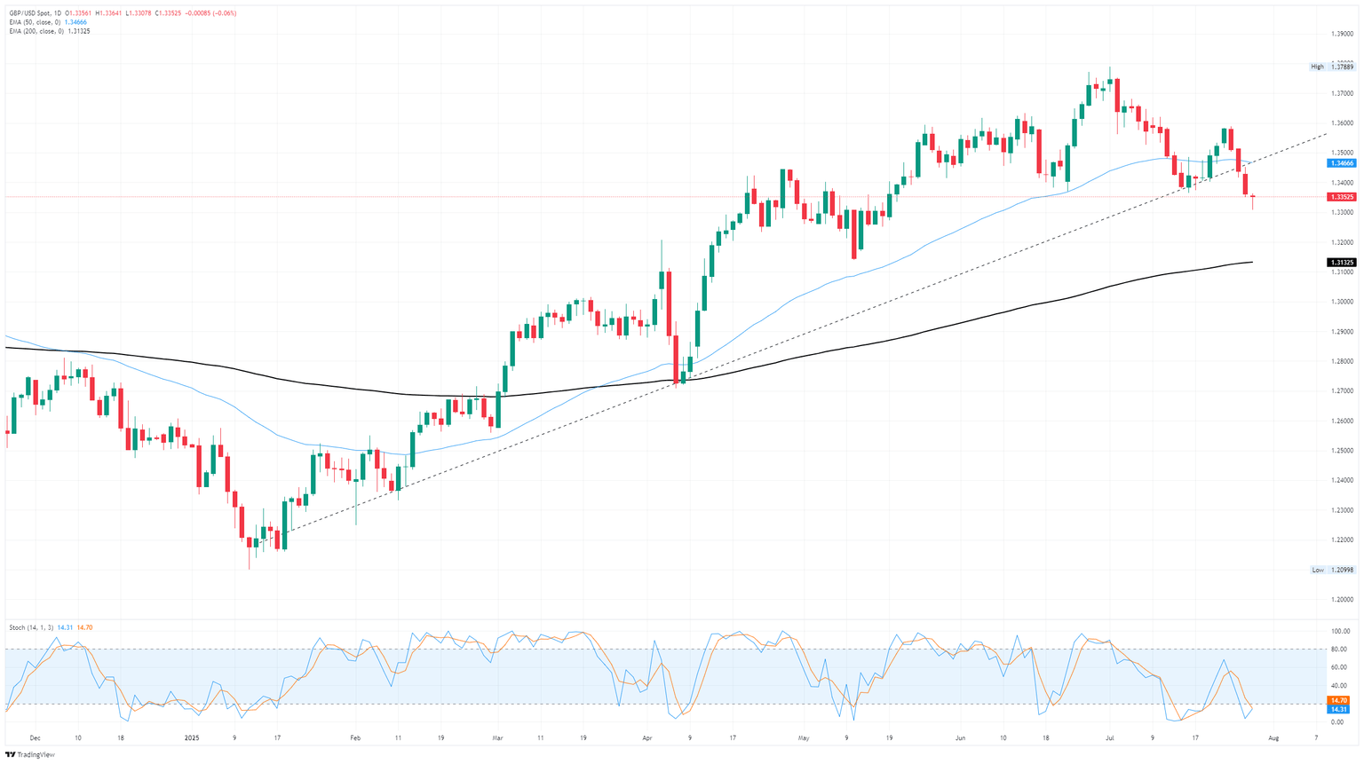 El cambio de mediodía del martes en las ofertas del Cable podría marcar el final de la racha de pérdidas a corto plazo del par. 1.3300 se ha marcado como un nivel de soporte técnico interino, y los compradores del GBP/USD buscarán recuperar territorio al norte de la media móvil exponencial (EMA) de 50 días y la zona de precios principal de 1.3500.