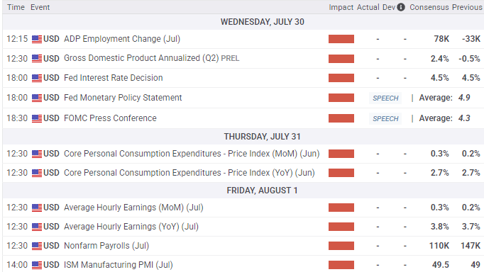 - Los informes de PIB de EE.UU., inflación PCE y NFP de empleo harán de esta una semana intensa.