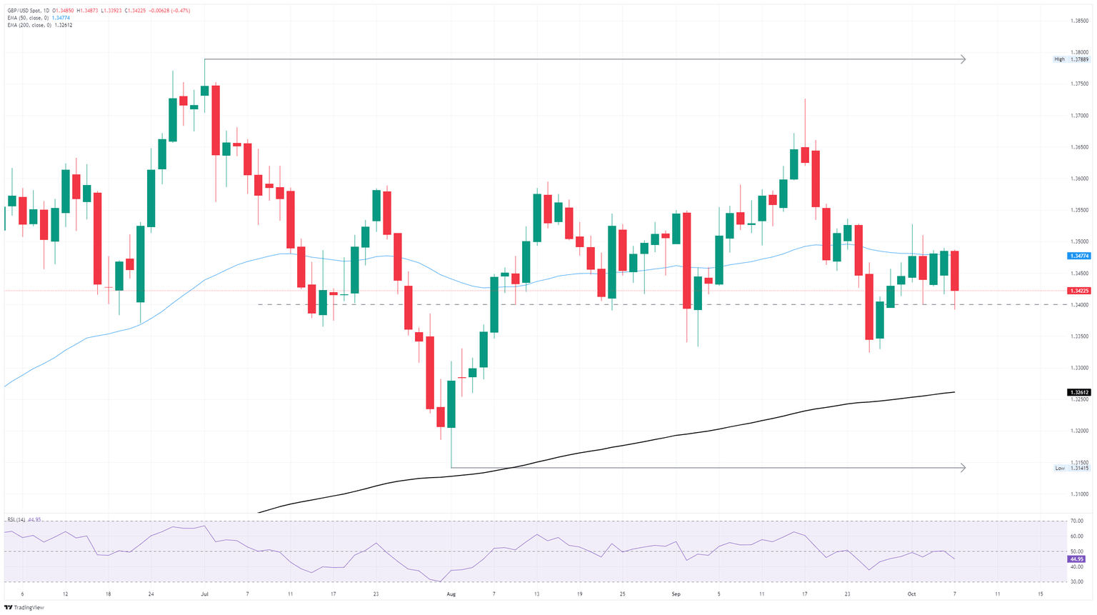 - El Cable está oscilando en el lado bajo de la media móvil exponencial (EMA) de 50 días, manteniendo a los operadores de la Libra en una posición defensiva.