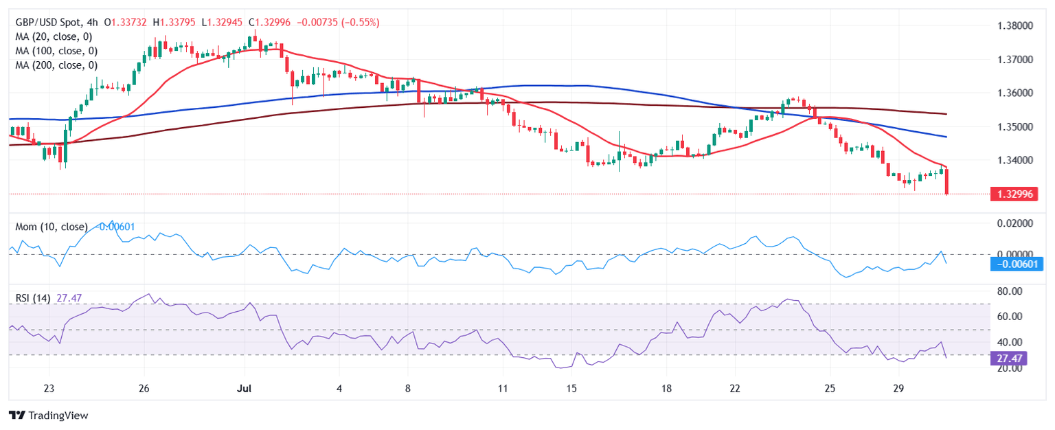 El par GBP/USD ha caído durante seis días consecutivos y actualmente cotiza en niveles que no se veían desde mediados de mayo. El fuerte impulso a la baja es claro en los marcos de tiempo intradía, con indicadores técnicos en el gráfico de 4 horas dirigiéndose hacia el sur dentro de lecturas de sobreventa, pero lejos de sugerir agotamiento a la baja.
