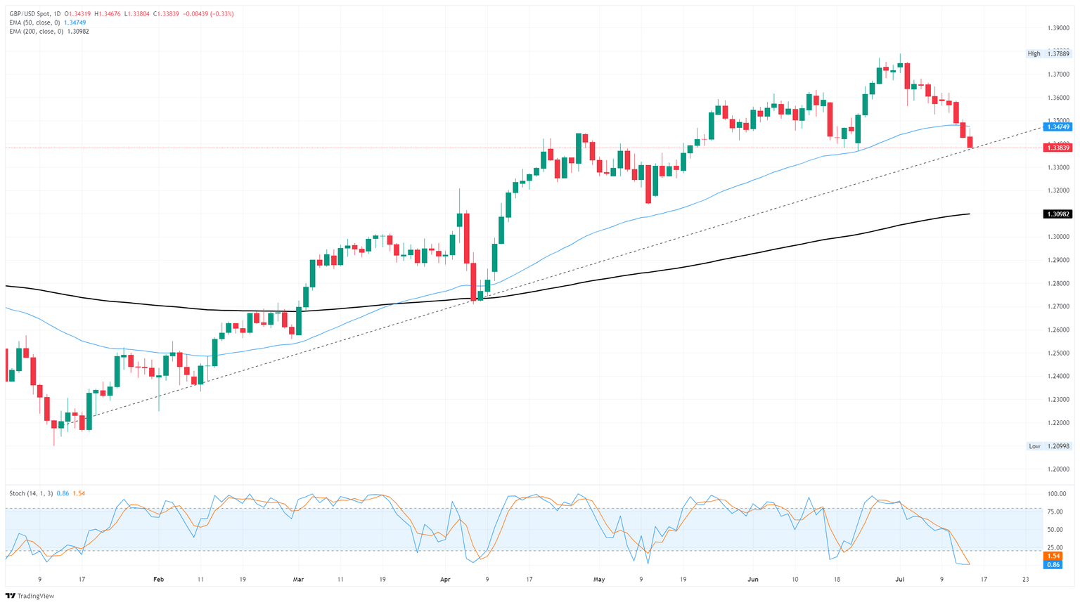 - La Libra esterlina ha caído casi un 3% frente al Dólar en julio.