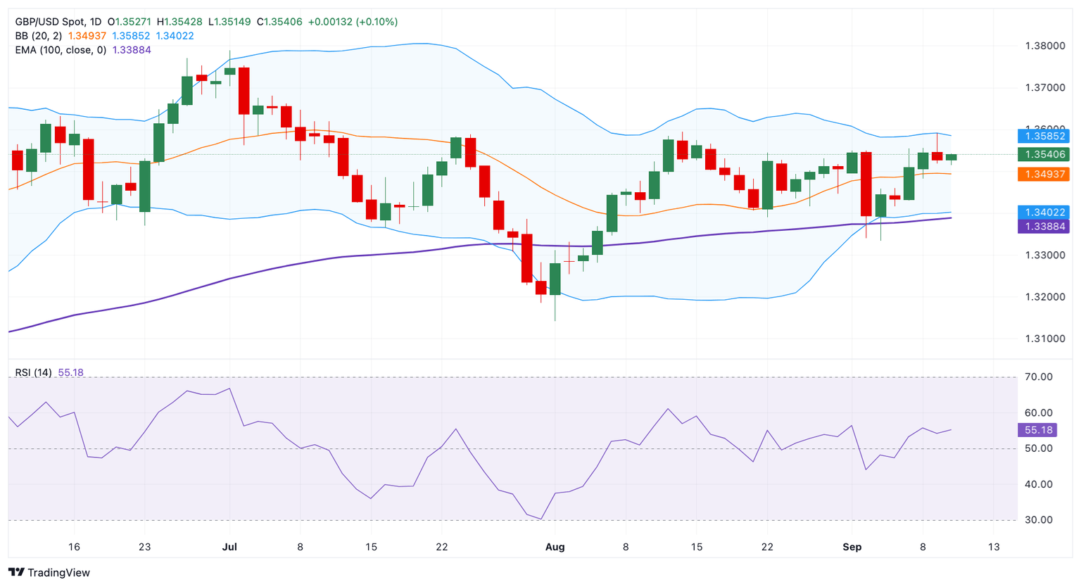 El par GBP/USD cotiza en una nota más fuerte alrededor de 1.3540 durante la primera parte de la sesión europea del miércoles. Los operadores aumentan sus apuestas de que la Reserva Federal de EE.UU. (Fed) reducirá los costos de endeudamiento en su reunión de política monetaria del 16-17 de septiembre, lo que pesa sobre el Dólar estadounidense (USD) frente a la libra. Los operadores esperan los datos del Índice de Precios de Producción (IPP) de EE.UU. de agosto más tarde el miércoles, ya que podrían ayudar a definir el tamaño y el alcance de los recortes de tasas de interés del banco central estadounidense para la próxima semana y más allá.