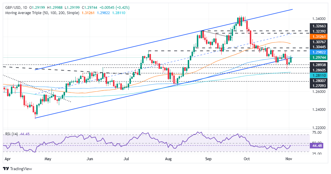 La Libra esterlina recortó algunas de las pérdidas de la semana pasada frente al Dólar y registró ganancias de más del 0,46% antes de un ajetreado calendario económico que incluye las elecciones presidenciales de EE.UU. Al momento de escribir, el GBP/USD cotiza en 1.2971 después de rebotar desde mínimos diarios de 1.2945.