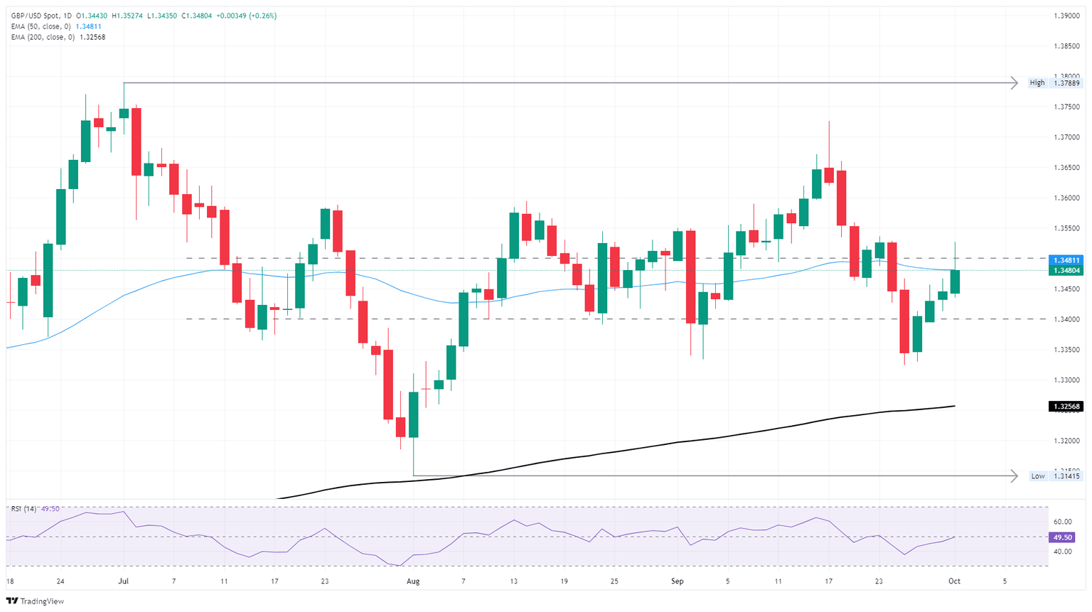 El GBP/USD se deslizó hacia una cuarta sesión alcista consecutiva, tocando brevemente la zona de 1.3500 antes de estabilizarse en una ganancia tranquila del 0.27% para las sesiones del día. Los operadores de Cable ahora se dirigen a la parte trasera incómoda de la semana de negociación, con un cierre del gobierno de EE.UU. amenazando el flujo de datos oficiales de empleo e inflación de alta calidad, así como una notable falta de lanzamientos de datos económicos significativos del lado del Reino Unido.