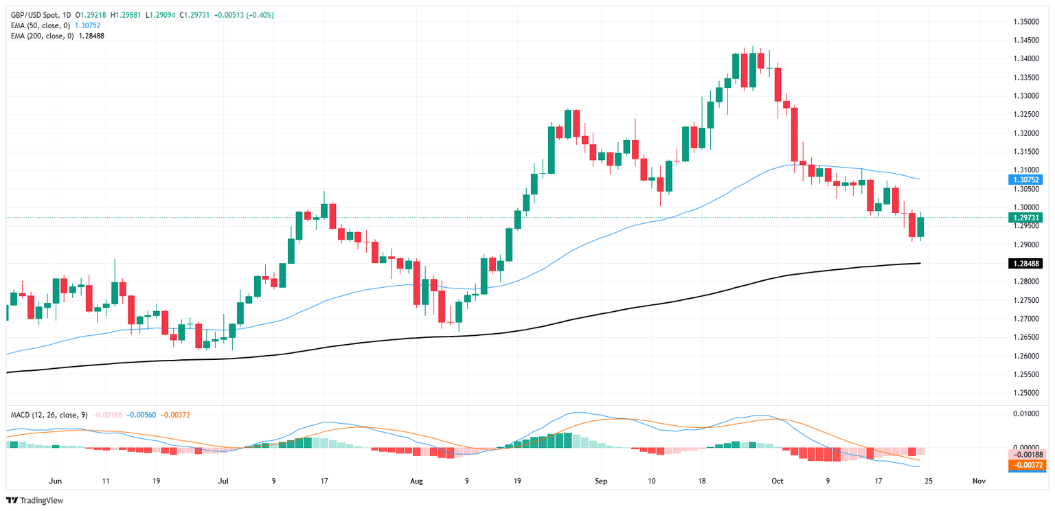 El GBP/USD recuperó terreno necesario el jueves, subiendo un 0.4% mientras los postores de la libra luchan por mantener la acción del precio por encima de la zona de 1.2900. Las cifras del Índice de Gestores de Compras (PMI) del Reino Unido no cumplieron con las expectativas el jueves temprano, pero tanto los componentes de Servicios como de Manufactura se mantuvieron por encima del territorio de contracción por debajo de 50.0.
