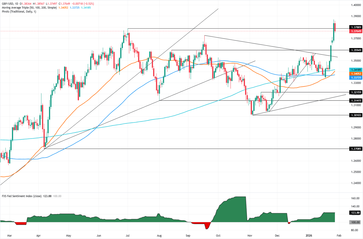 Si el GBP/USD supera 1.3800, la siguiente resistencia sería el pico anual en 1.3869, antes de 1.3900.