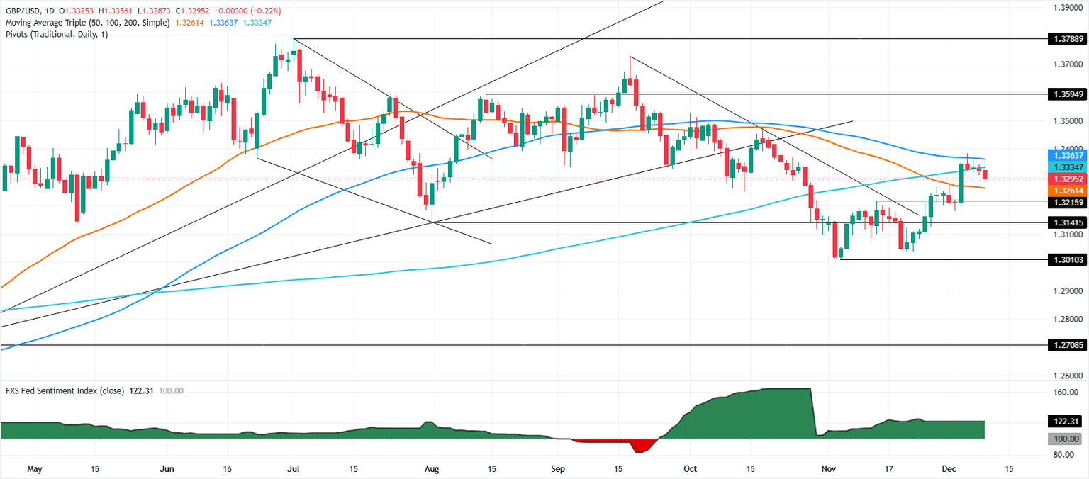 - El GBP/USD rompe por debajo de 1.3300 después de que las ofertas de empleo JOLTS aumentaran a 7.67 millones en octubre, impulsando la demanda del Dólar estadounidense.