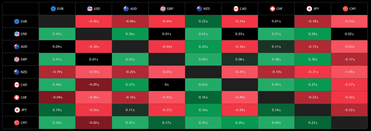(Mapa de calor de divisas de TradingView, marco de tiempo de 1D)