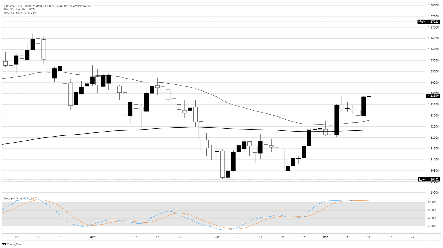 El GBP/USD se mantiene firmemente en territorio alcista al entrar en la parte final de la semana, pero los postores de Cable se encontraron con un punto de resistencia técnica en la zona de 1.3400 el jueves. La Reserva Federal (Fed) realizó un tercer recorte de tasas de interés consecutivo esta semana, lo que refuerza el apetito por el riesgo en el mercado en general y empuja al Dólar estadounidense (USD) hacia la baja en todos los frentes.