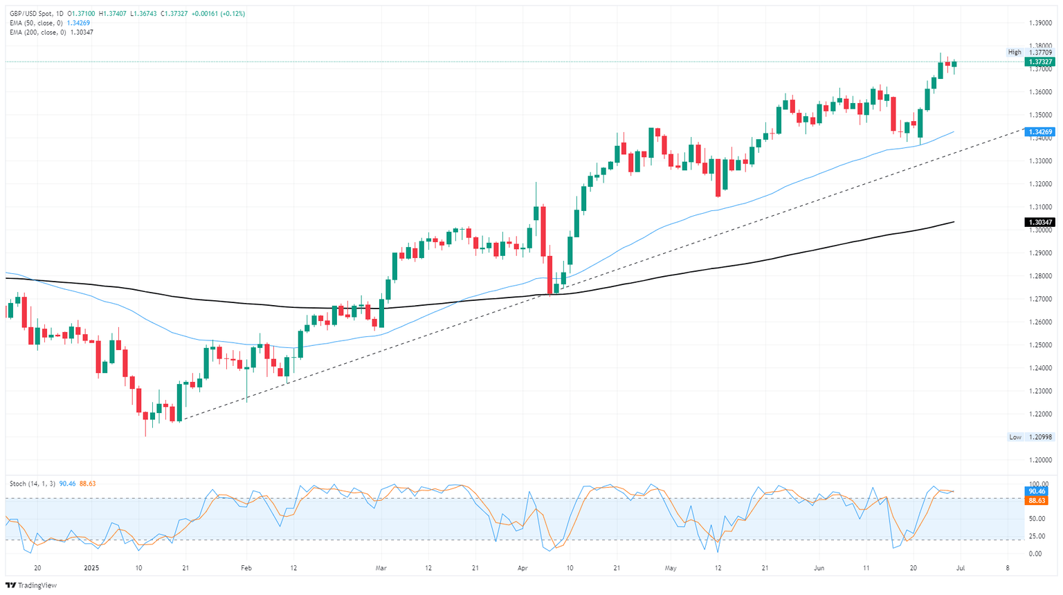 - El GBP/USD permanece firmemente anclado a máximos de varios años por encima de 1.3700.