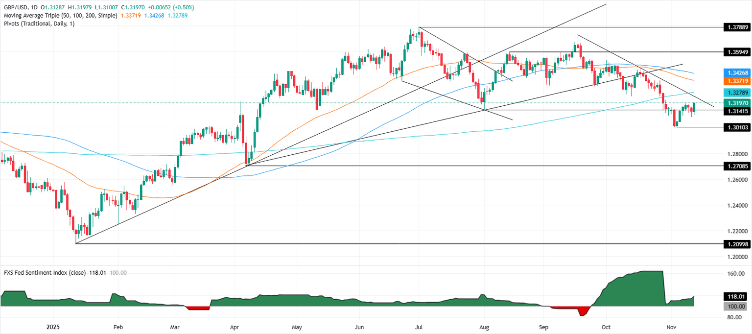 - El GBP/USD alcanza un máximo de dos semanas en 1.3197 mientras los operadores reaccionan a la renovación del financiamiento del gobierno de EE.UU. y a un sentimiento mejorado.