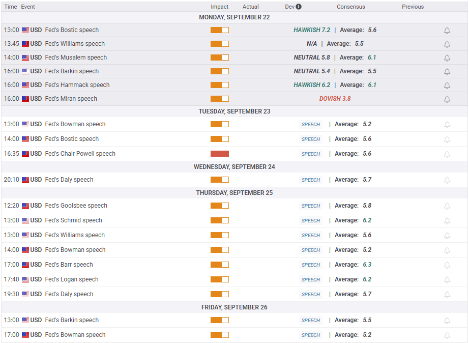 - Varios responsables de la Fed pronunciarán discursos a lo largo de la semana.