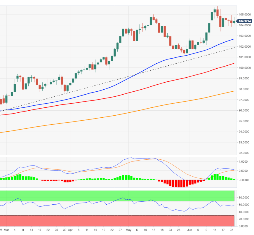Lo ideal es que el índice supere los máximos semanales en la zona de 105.00 a corto plazo para que la recuperación cobre impulso e intente una visita al máximo de casi 20 años en la zona de 105.80 (15 de junio).