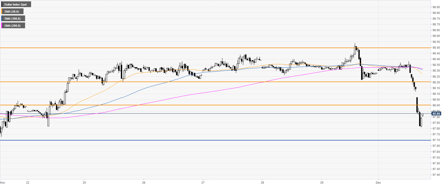 Índice del dólar estadounidense Análisis técnico: El DXY está en camino de registrar su peor caída diaria en más de dos meses y medio