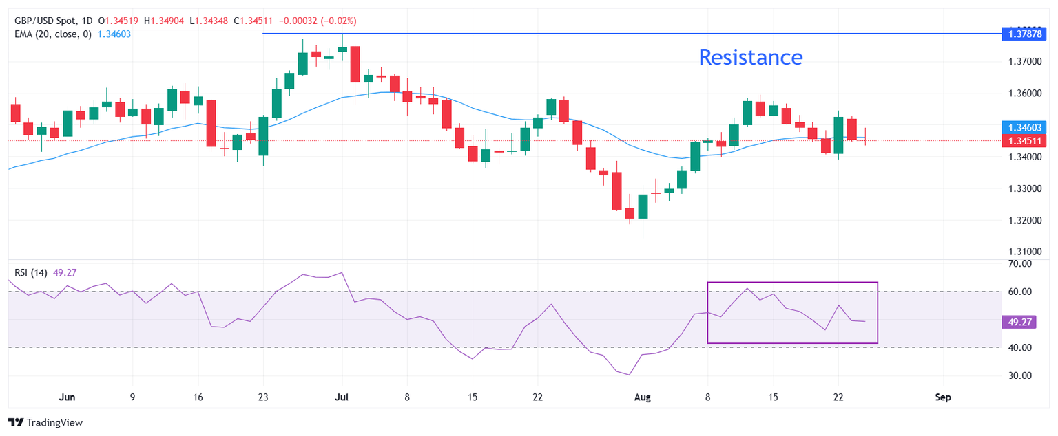 La Libra esterlina se mueve ligeramente al alza a cerca de 1.3460 frente al Dólar estadounidense el martes. La perspectiva a corto plazo del par GBP/USD es incierta ya que oscila cerca de la media móvil exponencial (EMA) de 20 días, que cotiza alrededor de 1.3460.