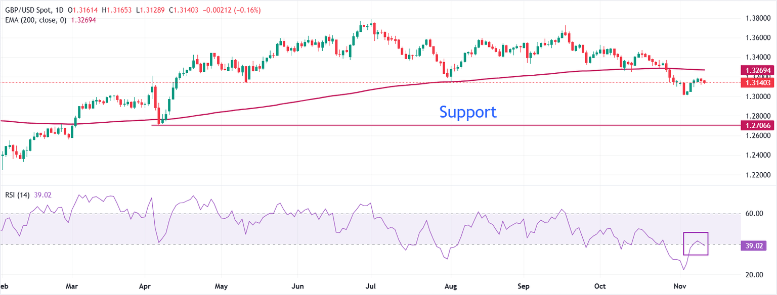 La Libra esterlina cotiza dentro del rango de negociación del martes alrededor de 1.3140 frente al Dólar estadounidense el miércoles. La tendencia general del par sigue siendo bajista ya que cotiza por debajo de la Media Móvil Exponencial (EMA) de 200 días, que está alrededor de 1.3269.