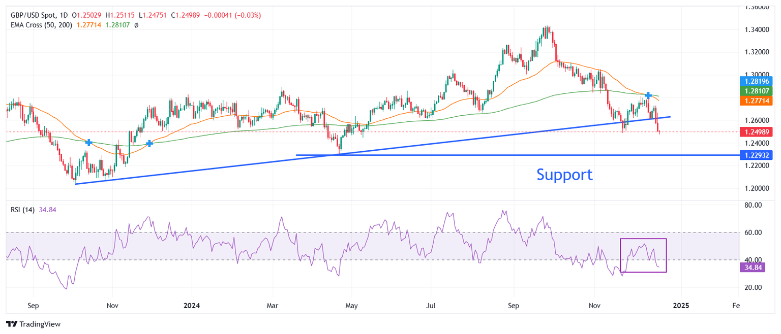 La Libra esterlina se debilita frente al Dólar estadounidense en una ruptura decisiva por debajo de la línea de tendencia ascendente alrededor de 1.2600, que se traza desde el mínimo de octubre de 2023 de 1.2035.