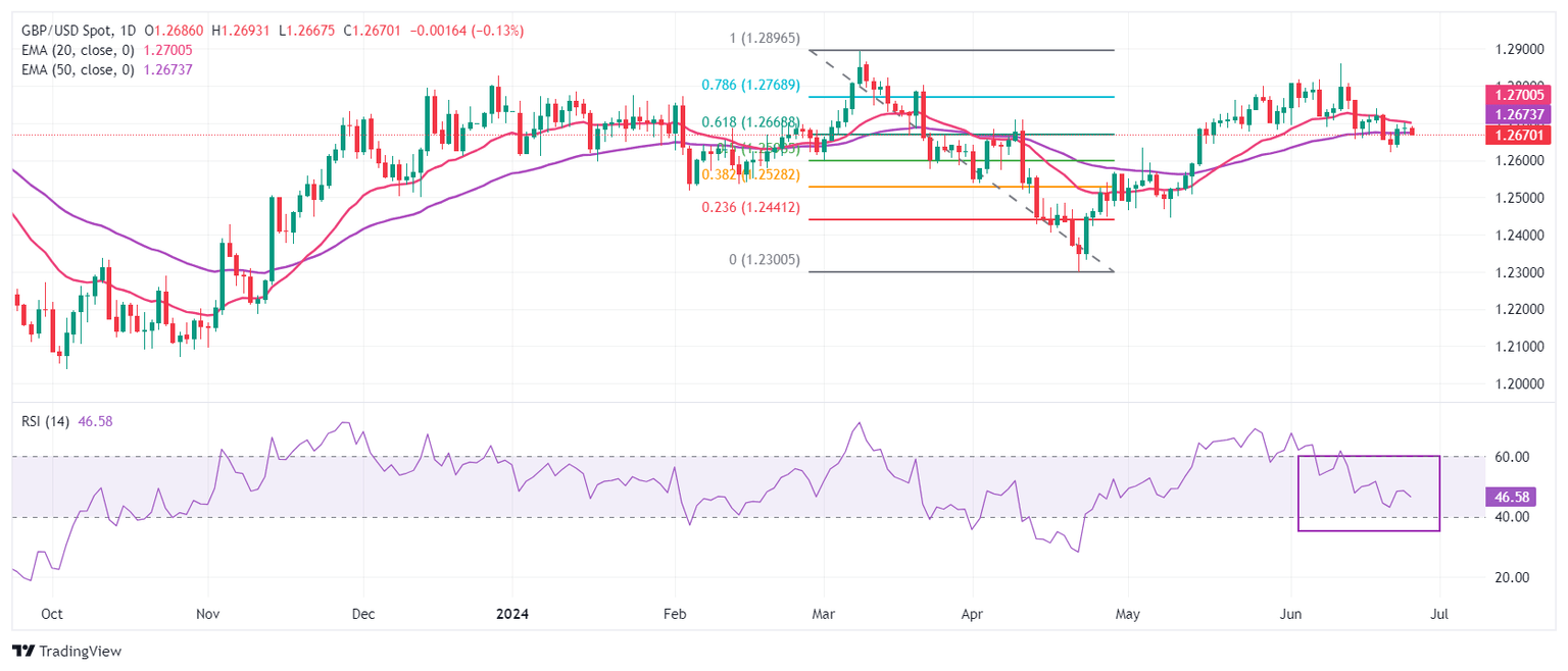 La Libra esterlina enfrenta presión cerca de 1.2700 frente al Dólar estadounidense. El par GBP/USD sigue encontrando vendedores cerca de la media móvil exponencial (EMA) de 20 días, que cotiza alrededor de 1.2700. Además, el Cable lucha por mantener la EMA de 50 días, que actúa como soporte alrededor de 1.2670.