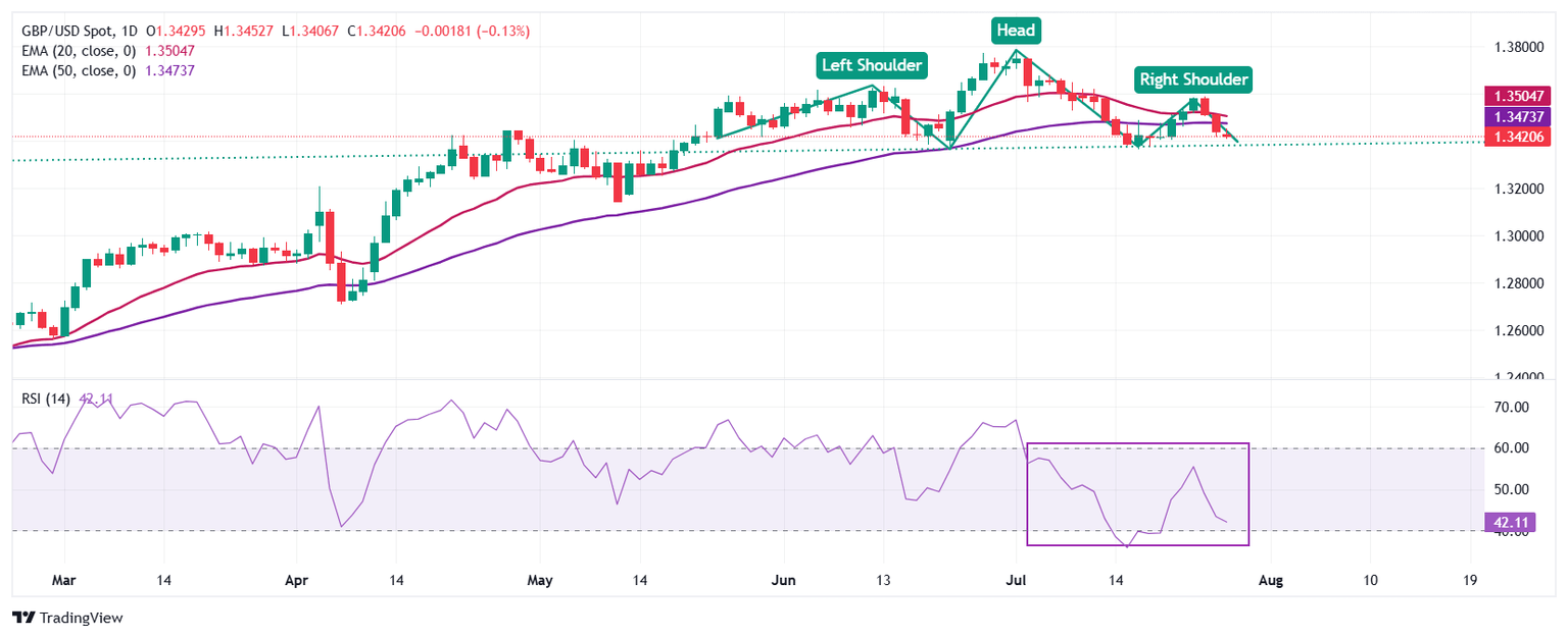 La formación de un patrón gráfico de Cabeza y Hombros (H&S) en el marco temporal diario también sugiere que las perspectivas para el Cable son bajistas. La línea de cuello del patrón gráfico H&S se traza cerca de 1.3413.
