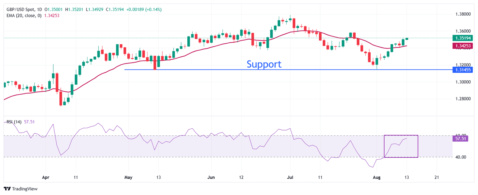 La Libra esterlina extiende su movimiento al alza a cerca de 1.3570 frente al Dólar estadounidense el miércoles. La tendencia a corto plazo del par GBP/USD es alcista ya que se mantiene por encima de la media móvil exponencial (EMA) de 20 días, que cotiza alrededor de 1.3425.
