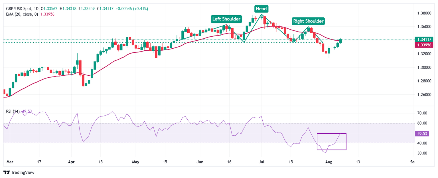 Análisis Técnico: La Libra esterlina recupera la EMA de 20 días