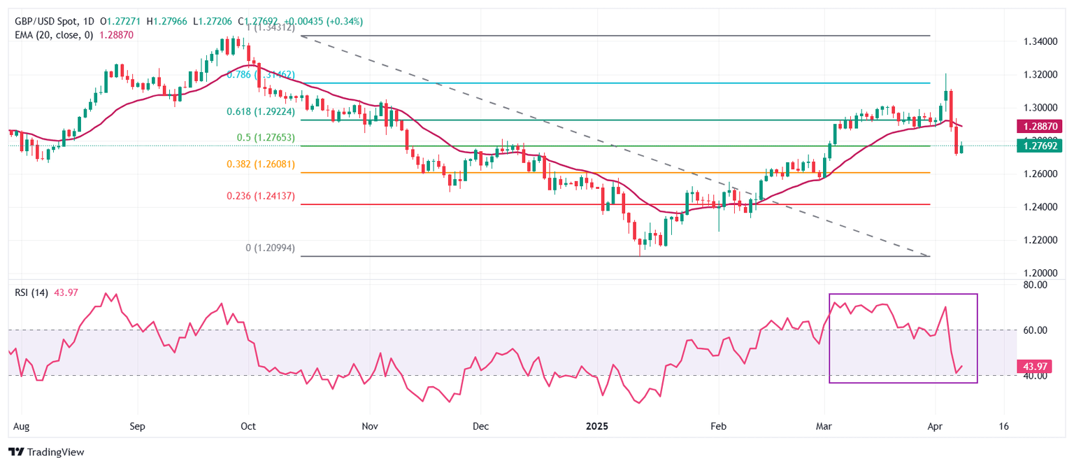La Libra esterlina busca ganar terreno por encima de 1.2700 frente al Dólar estadounidense el martes tras enfrentar una intensa presión de venta en los últimos dos días de negociación. El par GBP/USD cotiza por debajo de la media móvil exponencial (EMA) de 20 días, que está alrededor de 1.2887, lo que sugiere que la tendencia a corto plazo es bajista.
